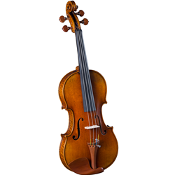 This marvelous new violin is worthy of the finest professional player! The finish is a convincing reproduction of a fine, old masterpiece, with all the marks of wear that would occur in two centuries of use. It has an aged patina that is most pleasing and the color of the varnish is a lovely golden orange. The selected solid spruce top and the well-flamed solid maple back are hand-carved and graduated to perfection, and the resulting tone is rich, free and sonorous, with wonderful carrying power. The trimmings are of finest boxwood in the Hill-style, with black pips and collars. The fingerboard is genuine ebony. Thomastik Dominant strings are fitted and the outfit includes a resilient, well-balanced J. LaSalle LB-31 Brazilwood Premium Student Violin Bow. The case is a Travelite TL-33 lightweight oblong rigid foam model with plush interior and matching blanket. With all these strictly professional features, this outfit is a phenomenal value!