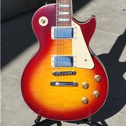 Made in collaboration with the Gibson™ Custom Shop, the Epiphone 1959 Les Paul™ Standard is Epiphone’s incredible recreation of the rare vintage classic, updated to be more authentic and true to the originals than ever. It features a mahogany body with a maple top with a AAA flame maple veneer, a one-piece mahogany neck with a comfortable ’59 rounded,medium C profile, long neck tenon, and Gibson-style “open book” R9 headstock shape, VOS (Vintage Original Sheen) finish, Gibson Custom bucker humbucking pickups, Switchcraft® selector switch and 1/4” output jack, CTS® pots, 50s era wiring, Mallory™ capacitors, non-beveled pickguard, Epiphone Deluxe vintage tuners with Keystone buttons, and a vintage-style brown and pink hardshell case. Play one today, and prepare to be amazed!